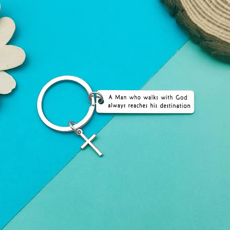 Carry a daily reminder of faith, guidance, and purpose everywhere you go. This inspirational keychain features the powerful message: “A man who walks with God always reaches his destination.” Designed to encourage strength and direction, it’s the perfect accessory for believers who want to keep God’s presence close.